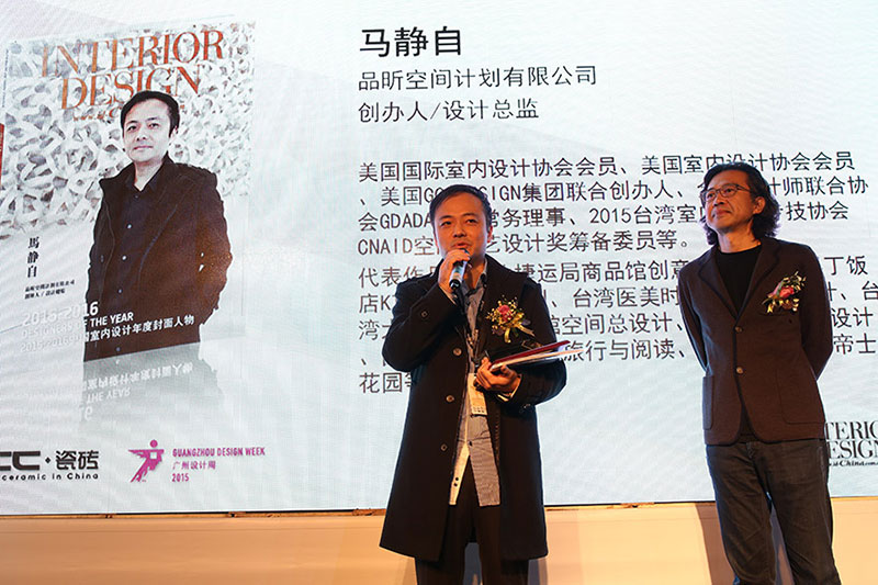 2015年12月4日,由美國《室內設計》中文版雜誌首創的金牌活動——中國室內設計年度封面人物,頒獎典禮為廣州設計週揭開序幕。品昕設計 馬靜自總監 以多元的設計風貌與獨特的空間美感,征服國際性設計領域,成為台灣商業設計空間領域中舉足輕重的設計師,在榮獲美國萊斯LUXE中文版年度十大封面人物,以及成為《福布斯》中文版「中國最具發展潛力前30強設計師」後,一舉摘得2015金堂獎零售與展示空間優秀雙獎,更於今年獲選為「2015-2016中國室內設計年度封面人物」。