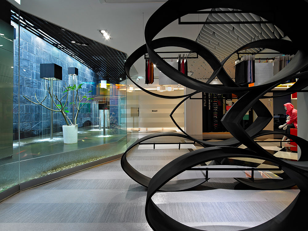 這次的設計案主要是希望將舊有的傳統文化,以一種創新手法來賦予其新的生命,由於業主方以紡織為其主要的生產重心,其主要產品為紡織品及其所設計的服裝,故嘗試將紡織的元素置入空間設計,讓傳統的紡織業呈現新的樣貌外,也將在地性的精神傳承下來。其次,對於紡織業而言相當重要的水資源,以及同時為紡織及服裝所著重的色彩元素與織線元素,皆作為空間之間聯結,將傳統的精神縈繞於空間當中,保留文化,並創造新的態度。