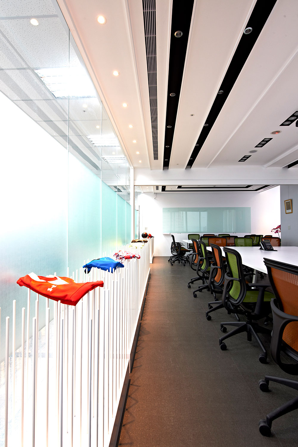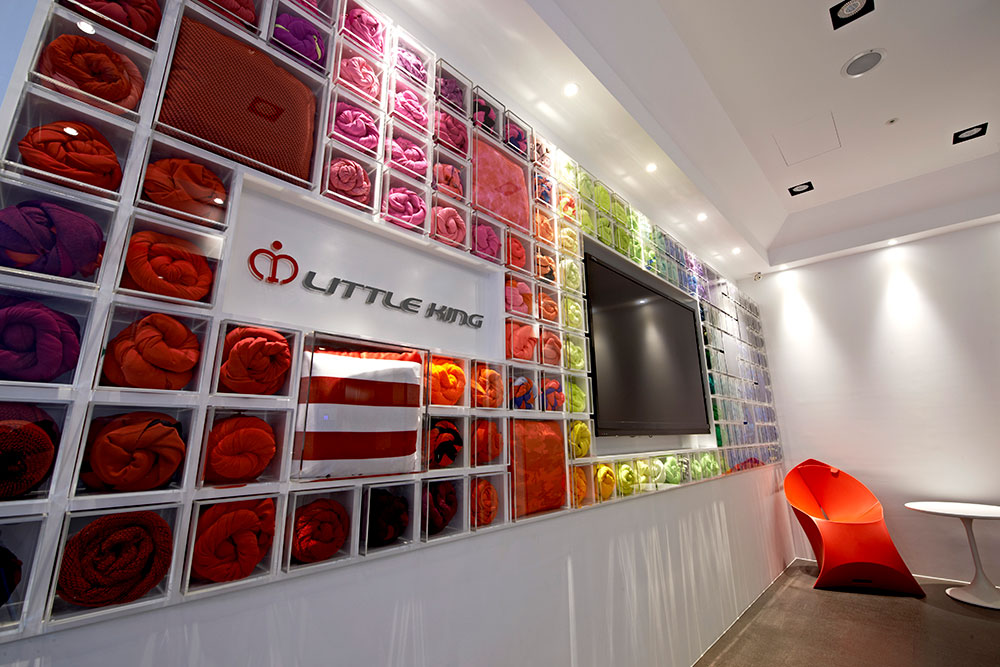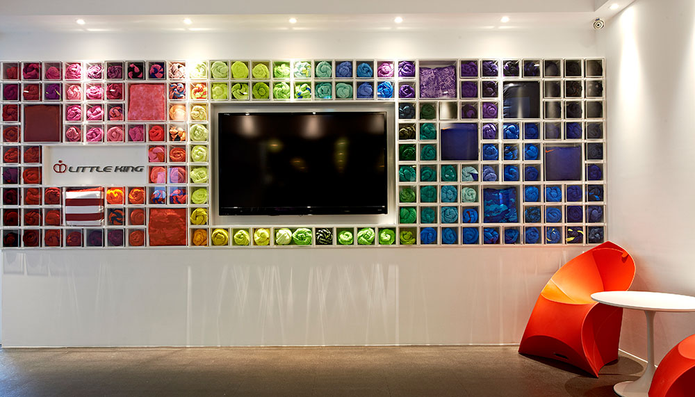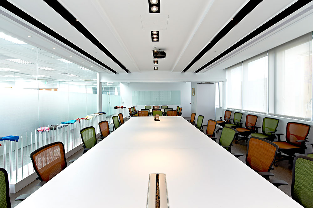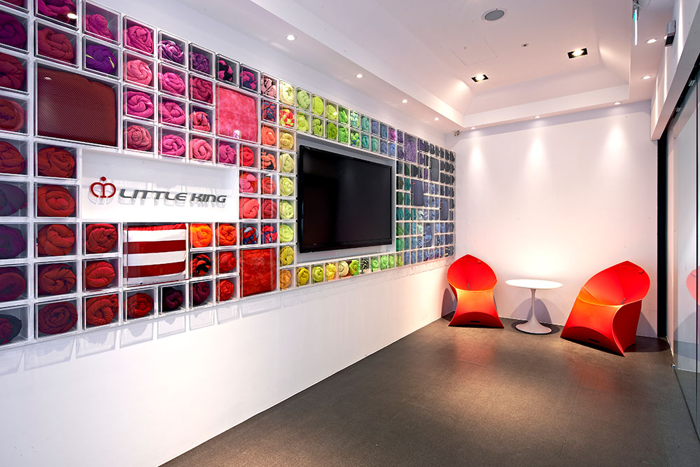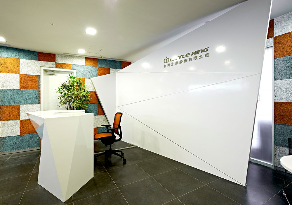 由於業主為知名於國際布料市場的台灣品牌企業,故設計上以富含企業產品元素的布料及色彩置入於空間當中,藉由品牌精神與空間的交纏,編織出獨有的空間對話,並賦予其新的態度。首先印入眼簾的是可隨季節而換置的繽紛色彩形象牆,除了結合品牌,亦給個人更多不確定性的自由與驚喜,反應生活多向度的豐富層次,佐上清透淨白的純粹背景,使舒適而優雅的印象縈繞於空間,細膩的包容與承載人們的情感。會議室以天花板線條的處理,巧妙的隱藏吊隱式冷氣,並以其深淺層次與黑白色系的,搭配著高低不一的展示支架,為簡單而純淨的空間氛圍,凝塑出一抹自在而悠閒的愜意。
