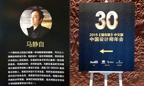 榮獲2015《福布斯》中文版「中國最具發展潛力前30強設計師」