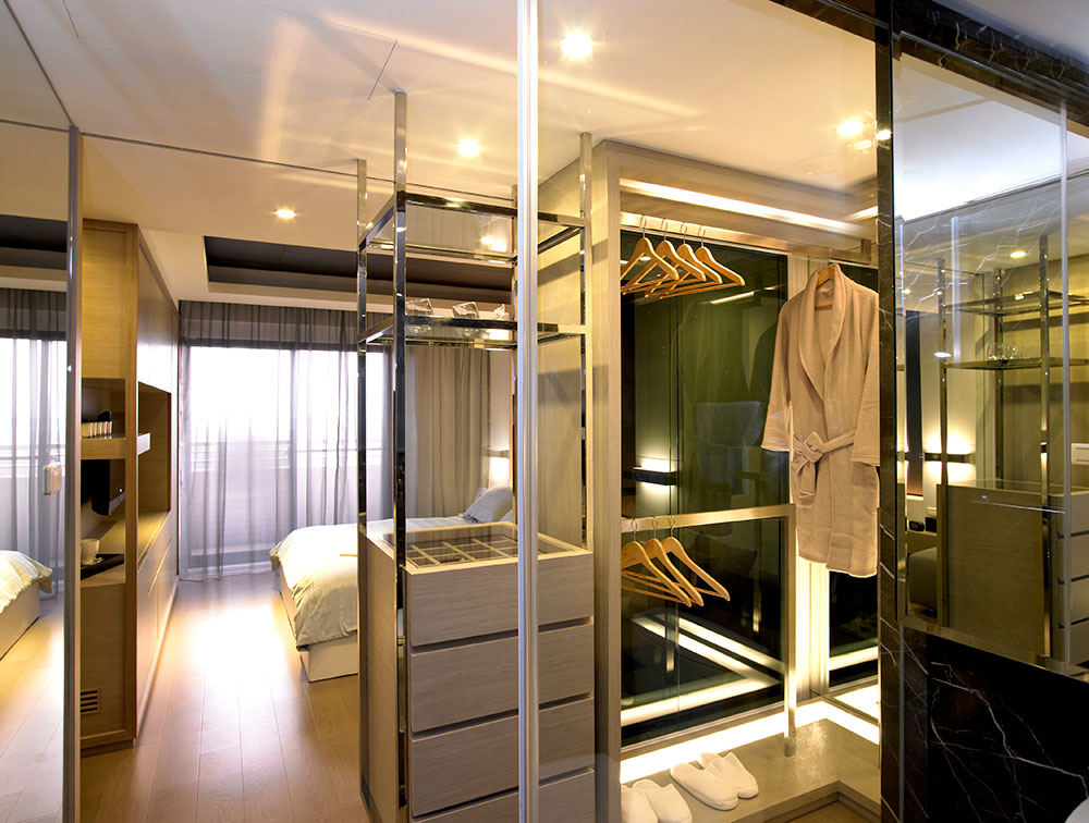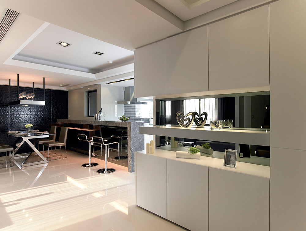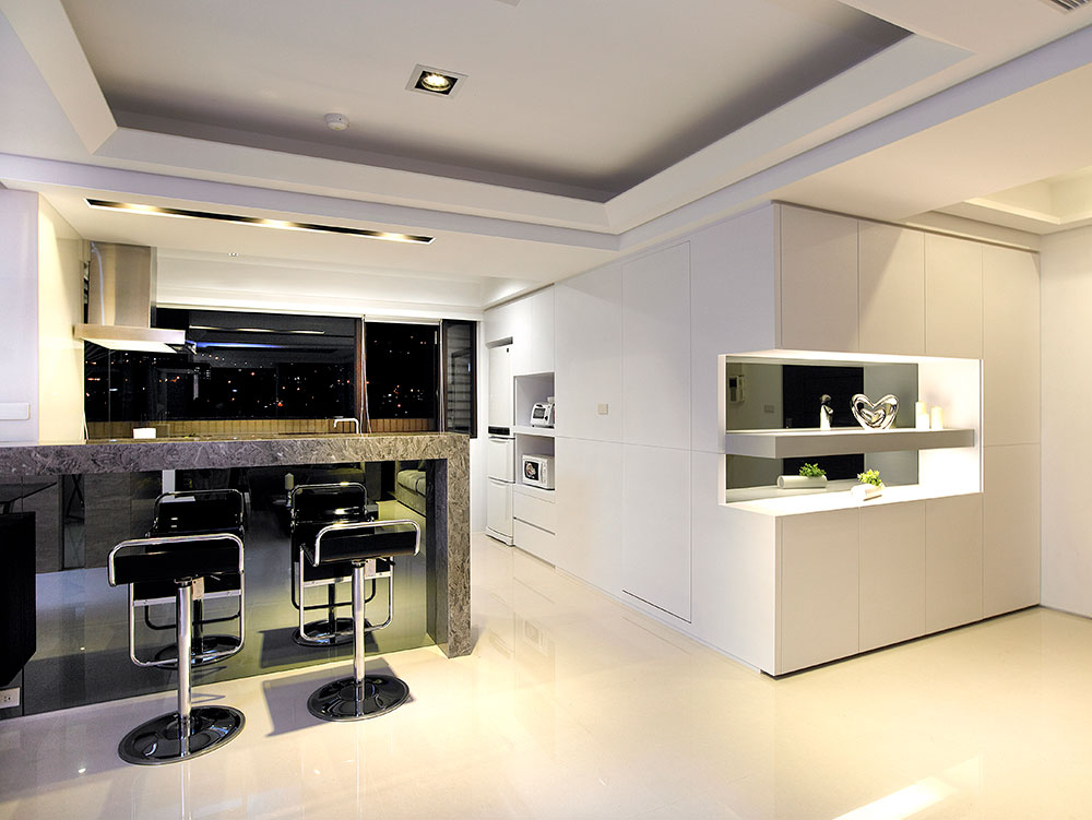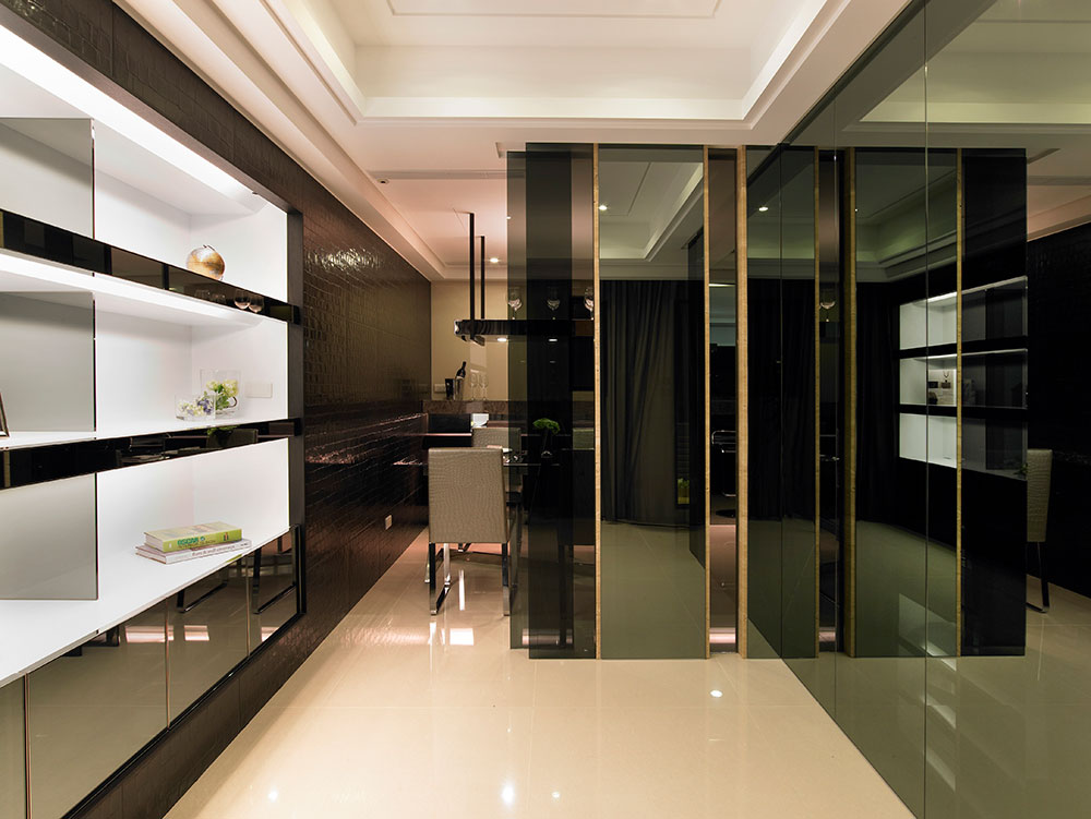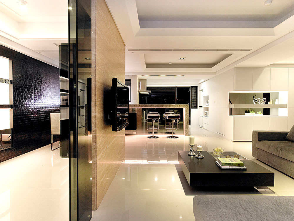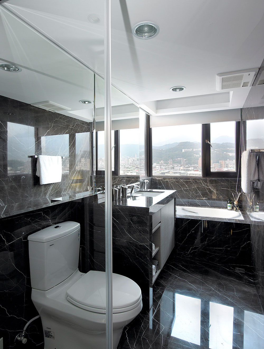 馬靜自分析了空間與環境的連結,從在地環境擷取對應的設計意象與元素,作為室內格局發展的源頭,探究屋主夫婦的生活習慣,不斷地轉化空間的定義,營造一種從「家」過渡到「飯店」之間的旅行感受。在動線、格局、採光的比例中,強調空間的延續與穿透感。同時運用石材、鏡面、玻璃及金屬等異材質衍生交織出內斂的文化內涵,運用設計轉譯,具體地將設計元素與概念融入空間當中,使室內空間得以展現其對應外在環境應有的風格面貌。空間色系上以接近都市的中性色調呈現出親切而細膩的氛圍。整體空間藉由多元意象與豐富的視覺效果,堆疊出空間層次,賦予室內空間與所在環境產生連結,凝塑出悠閒自在的生活情感。